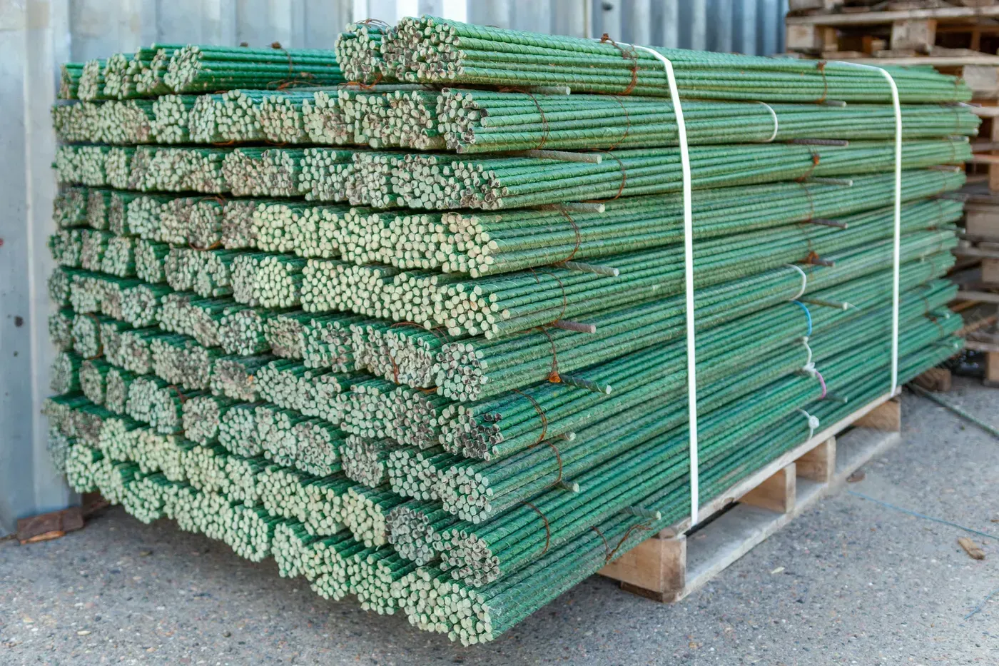 Композитные садовые колышки для подвязки растений. Опоры из стекловолокна не подвержены коррозии, поэтому их можно использовать с растениями, которые любят влагу, чрезмерный полив им не страшен.